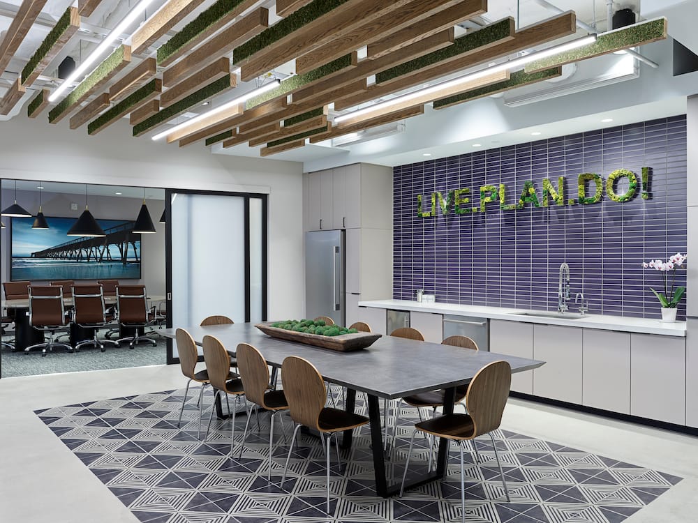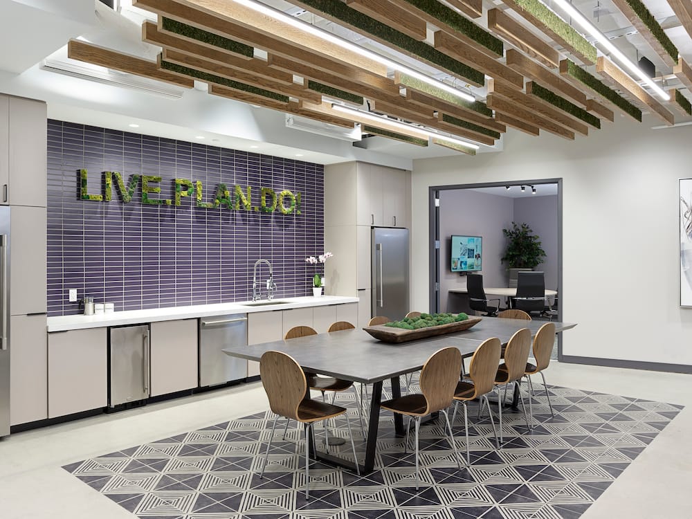 Financial 360 tapped //3877 for a progressive office that encourages interaction and community while also breaking away from the stereotype of a typical financial consulting firm space.
