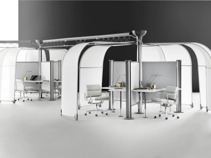 The roots of open offices lie in the original research and product development by Robert Probst and Action Office at Herman Miller. The ongoing research by Herman Miller and their colleagues in the contract furniture realm continue to push the envelope to meet the needs of today’s workforce and anticipate and meet the needs dictated by the advances in technology that drive so much of business today.