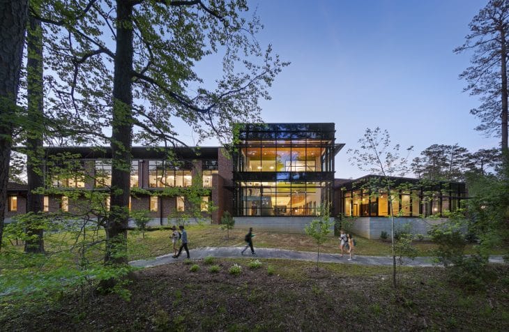 LS: In the case of the College of William and Mary, our client is incredibly enlightened about the benefits of nature and mental health. Kelly Crace, who will be speaking with us at Neocon, is William & Mary’s Associate Vice President for Health and Wellness. Crace oversees the school’s Student Health Center, Counseling Center, Campus Recreation, Health Promotion and the Center for Mindfulness and Authentic Excellence (CMAX). He also has an adjunct appointment in the W&M Department of Psychology. Crace drove us to consider more fully the impact of the built environment on the students and staff who use the facility. We leveraged strategies from standards like WELL and Fitwel, but Kelly helped us take these strategies to the next level. For example, he encouraged us to “overlap” different dimensions of wellness in spaces wherever possible in order to positively impact multiple dimensions of health at once (i.e. emotional, social and spiritual). A social space might have a biophilic wall, offer healthy food and serve as a trailhead for a nature path.