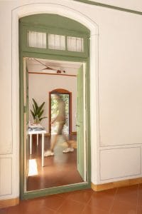 These delicate hues accentuate fenestrations and edges, juxtaposing the original door frames, roofing elements, and cornice details with a fresh, modern flair of playful colours and geometric patterns. Carefully curated pastel shades endow each space with a unique charm, breathing life into the outlined surface edges. For instance, shades of green, blue, orange, and red are used in the work areas to add a sense of intrigue, vibrancy and detail to the otherwise white-washed walls.