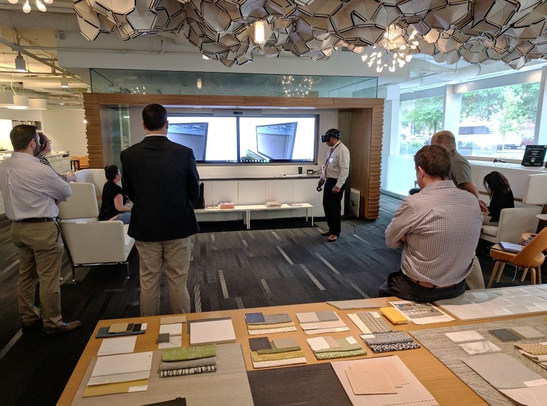 Beyond abstract spatial understanding of space, virtual reality can serve as a realistic gauge of functionality. Our healthcare designers were among the first market to use VR for just this reason. Taking advantage of the same software used to create the latest video games, we are able to program an entire operating room with moving parts and gravity for doctors and nurses to test. This technology can save hundreds of thousands of dollars by eliminating mockups and catching mistakes early in the design process. In a workplace environment, our simulations often don’t need to be as complicated to be valuable. Virtually sitting at a workstation can ensure elements are spaced comfortably and desired sight lines are maintained between work spaces.